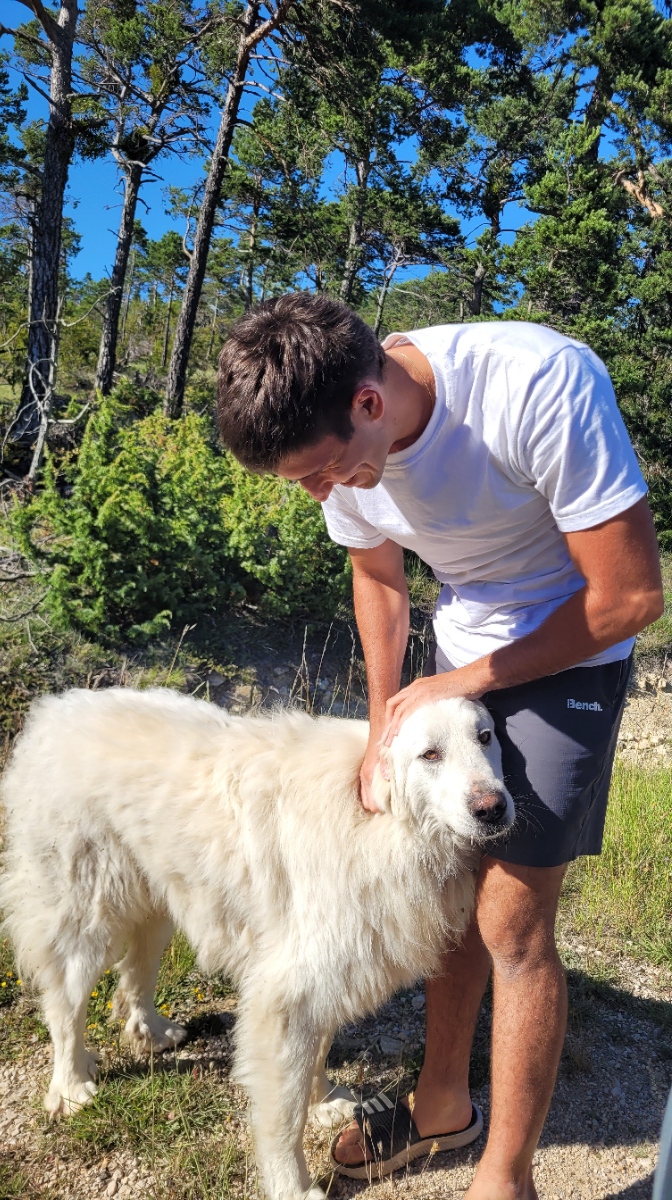 Perhaps the best part of our day was on our drive back through the mountain roads, where we were greeted by a friendly Great Pyrenese farm dog (whom we named Bergamo).