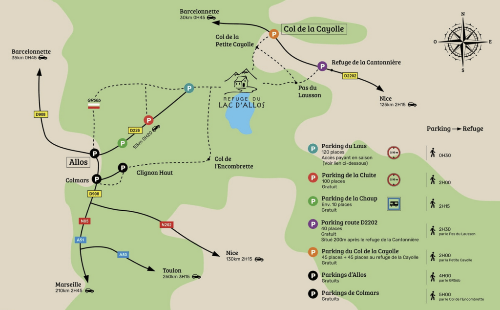 There are many possible parking spots for this hike depending on how far you want to walk. On that day we were particularly pressed for time (quick backstory: we got lost and ended up driving on a winding, gravel trail which unfortunately turned out to be a dead-end that led us into a field…then the descent took us a full hour because the car kept sliding and barely fit on the path to begin with) so we started at Parking du Laus. This parking lot cost us 5 euros, but it was well worth it in our case!
